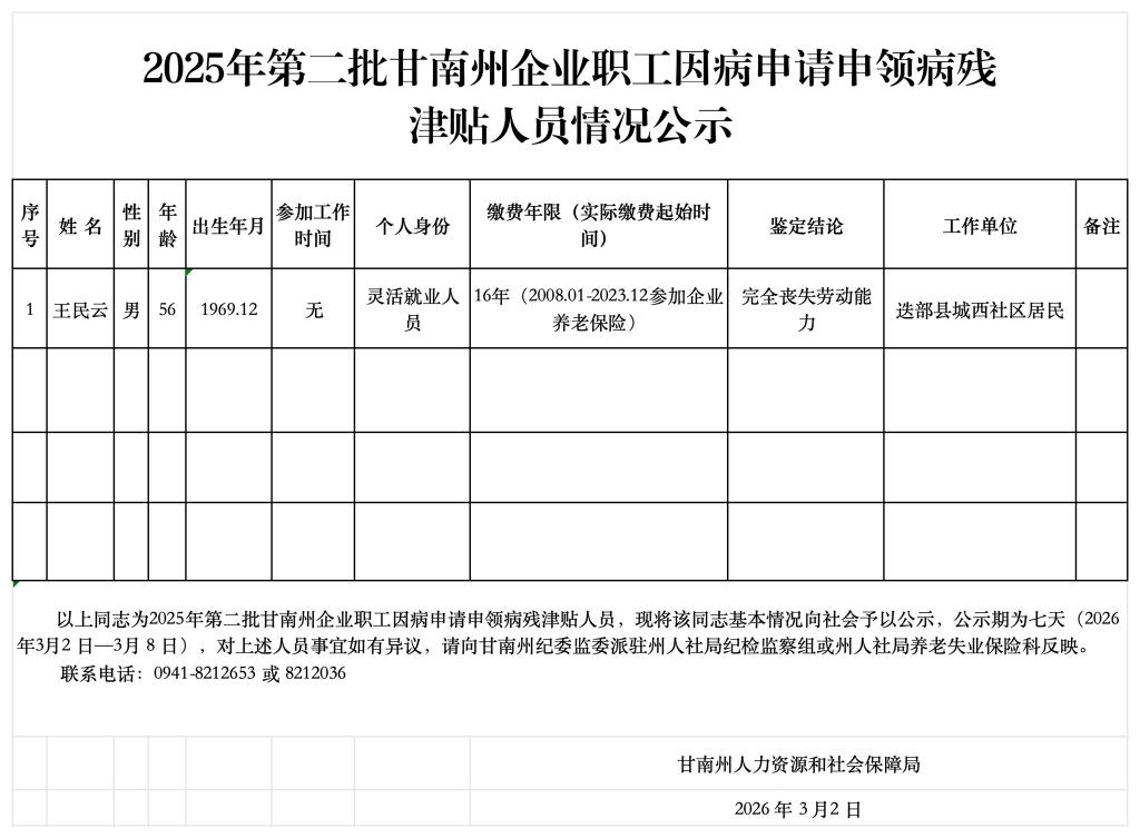 2025年第二批甘南州企业职工因病申请申领病残津贴人员情况公示