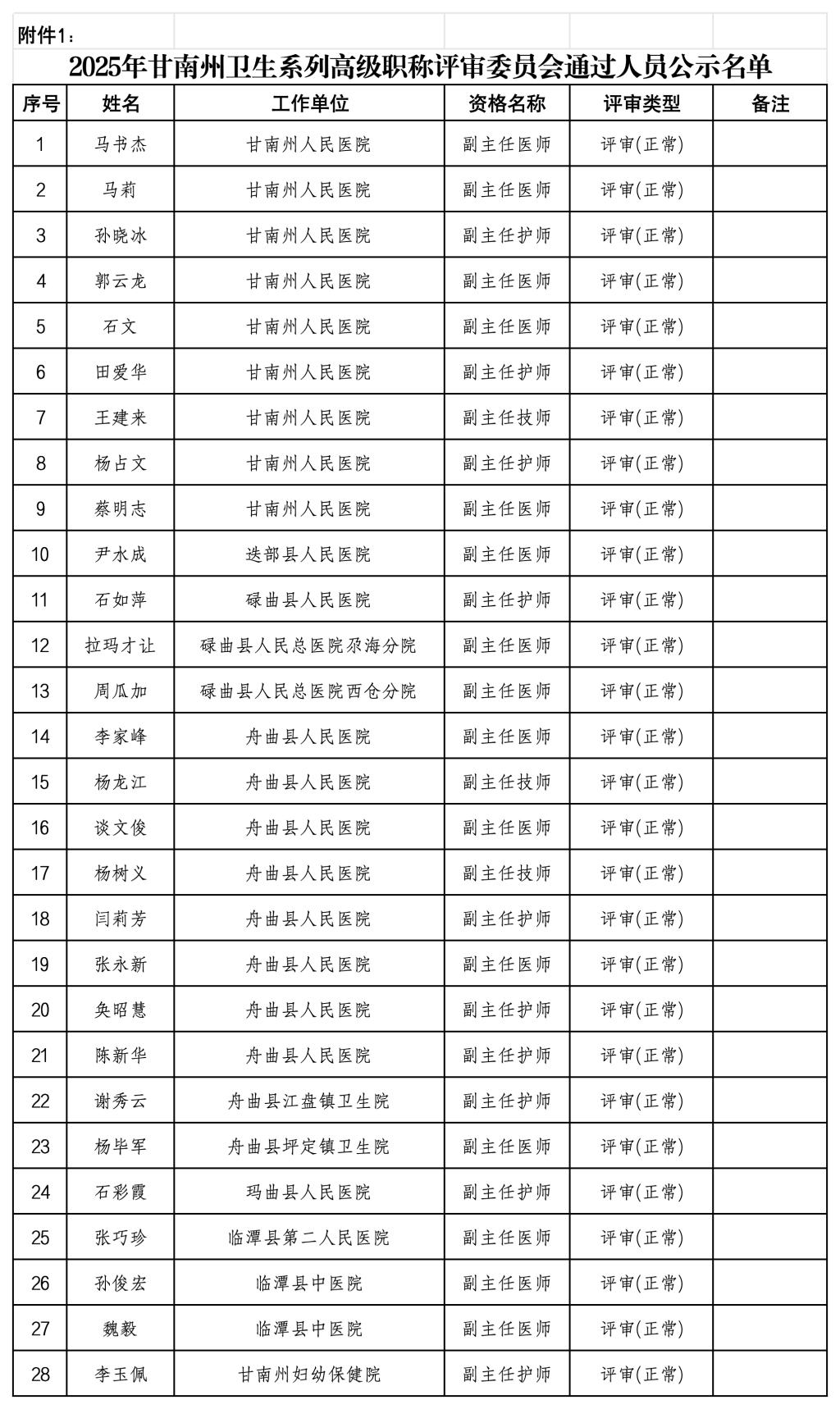 附件:1.甘南州卫生系列高级职称评审委员会通过人员公示名单